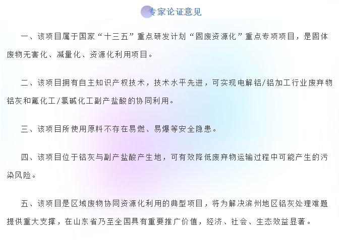 本月19日,山東魏橋長隆環(huán)保科技有限公司組織專家在北京市召開了“鋁灰/副產(chǎn)鹽酸資源化利用項(xiàng)目”專家論證會。